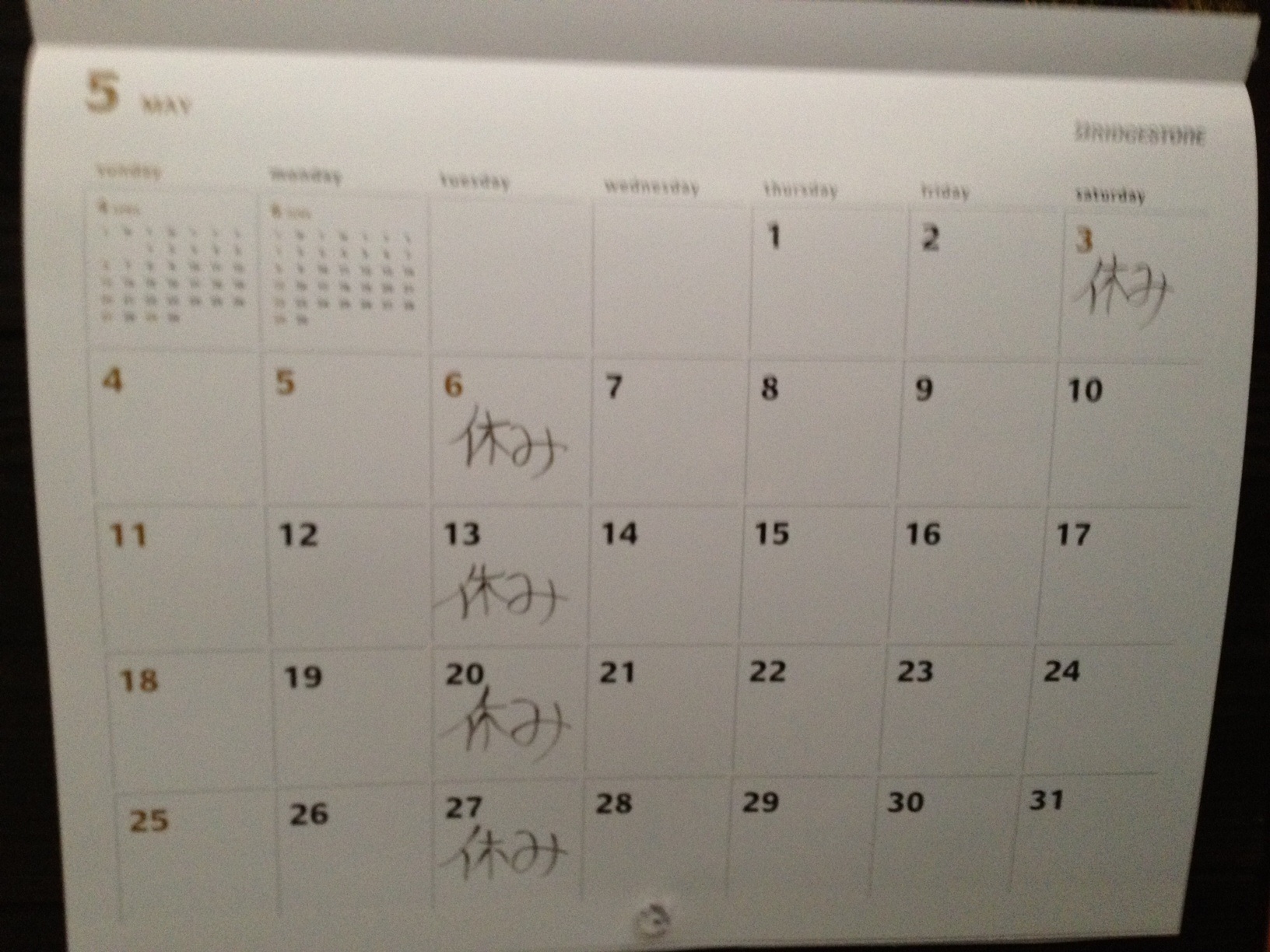 それ以外は、5月も火曜日を予定しております。