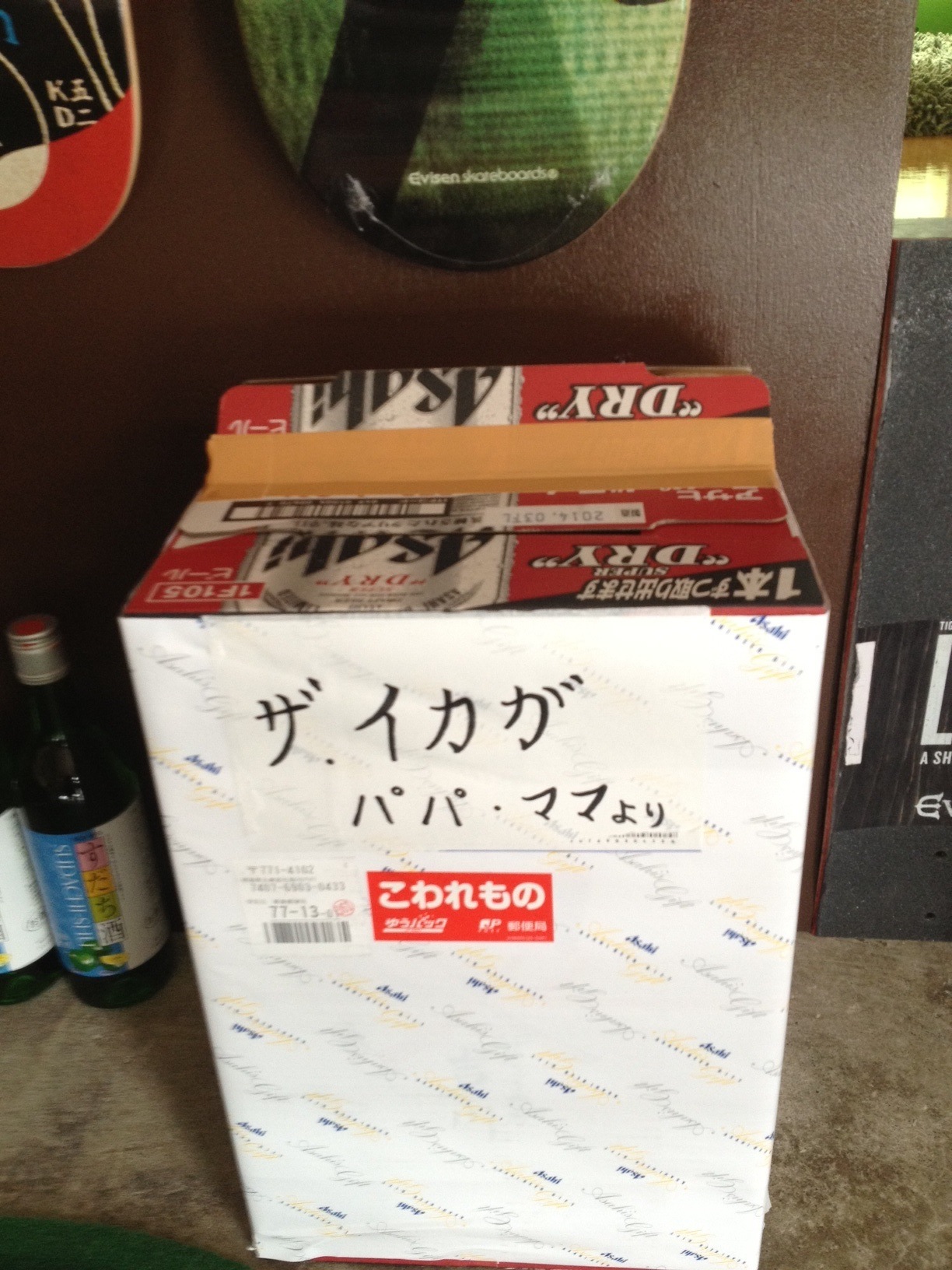 大阪でのラインの一つである、「ザ・イカが」のパパ・ママより祝品が届きました。