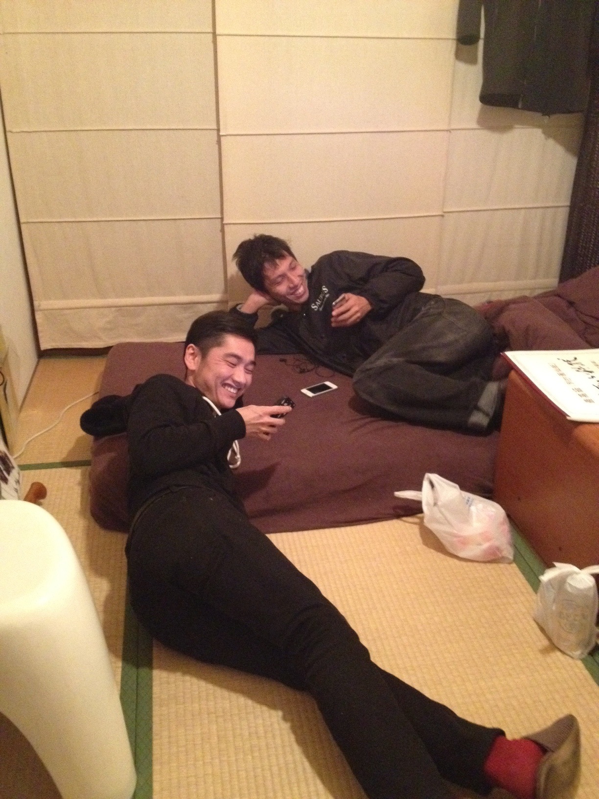 http://monoadapter.com/ NOVOLさんの展示会を見てから、雨の為良い話し合いをして今に到ります。 今回は前回のBLOGの続きを少々。 輪生む新年会で放映される映像については、長い年月を費やしました。 基本的には、あきのり(徳島出身の東京在住)が大阪に来た時のみに撮影をする。 それが積もった事と、最後の追い上げのだいやん(徳島出身の大阪在住)が撮影では協力し合いました。 編集では離れている事もあり、皆の意見も交えての確認。 あきのりのデータ待ちの潤(奥)とだいやん。 映像自体は、僕も見ておらず当日が楽しみの一つです。 思い出話の一つとして、あきのりが来ていたタイミングで生まれたトリックの一つは、LENZⅡへと捧げた事です。 しかしその後、あきのりの言うシチュエーションにて映像を残せた事は嬉しく想います。 あの時もあり今もある。(※本人には、直接誤り済み) あきのり本人が、LENZⅡの映像を見た時(東京試写会)に「輪生むパート良かったです」。 っと言われた時に、「あれはあの時必要だったのだよ、すまんがありがとう。」 っと想いました。 そこに到る(東京試写会)までに、大阪に来た時は、「あのトリック分がね〜。」 っと隙を見ては言ってたね〜。 トリックの完結を見た後は、その事には触れず、次も行きましょっと足を引きづりながらも 次を狙い格安バスにて大阪へ来てくれたね〜。 時に絡まれ、時にHPの限界を迎えましたが、どの様な感じになったのでしょうか。 映像・編集を楽しみにしております。 Y.Kamadaも出ているのか? っと当日を楽しみにしております。 当日は、アイス(くわまん)も嫁を連れて大阪へ帰って来ており、新年会後にフルブルームにて祝える人は、祝って行きましょう。 香川より、まっちゃんも来れるかも!? との一報あり(whimsy)。 そうた・春・まっちゃん… 個人的には、同じwhimsyのかたおかきとは、どうゆう絡みになるか楽しみです。 帰ってこれれば、久々の大阪過ぎて彼はパニックになる可能性大。 ※どうやら金曜日に香川県にて開催されたスケートゲームに出場していた模様。当日大阪入りしていれば彼のイベントでの生き様を聞いて見ましょう。(元ルームシェアメイト) Y.Kamadaも来るらしい!? マロはJHの勇姿を見に来るのか!? WAKAや、にっしんや、やまぐっちや、主わ!? MTBや…!? っと来れれば飲んで、滑って、祝って行きましょう。 |