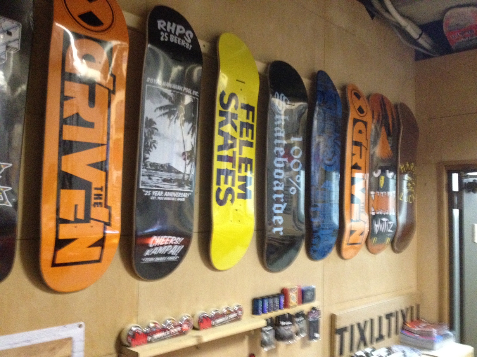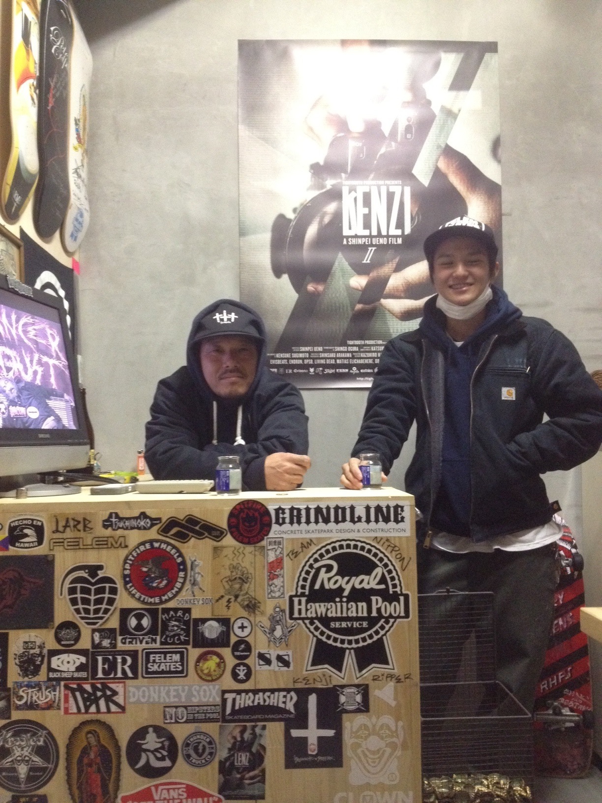 ここ最近の金曜日はRACK Skatesに行き。 写真:左 憲二さん 右 かずま 写真:店内の一部 憲二さんと色々話し、その後はGUMCHOP経由の イカが か、直接 イカが の流れ。 よく飲み、よく話し、よく歌い。 写真:瓶ビール スケートボードのセッションするタイミングを決めたり。 スポットに対する話しをしたり。 ブラジルで徳島勢と高まったり。 写真:フェイキーこぎが鋭かった、マロより拝借 次の予定があり、1時間勝負にかけていたJHの前歯が最後の高まりで欠けたり。 (どうやら差し歯だった模様っと言うか事実です。) POWER BOMEの木用火威(もくようかい)が面白かったり。 やはりスケートボードショップは良いですな。っと実感している次第です。 色々と粋な話しもあるのですが、それは文面で伝えるよりも直接話で。 とにもかくにも、輪生むの二人は、RACKSkatesを営む 粂田憲二さん が大好きなのであります。 写真:デッキ 店舗詳細 https://www.facebook.com/RackSkateboardShop 次の機会も楽しみにしております。 写真:最後は、イカがでのZOOBOY(三種類) |