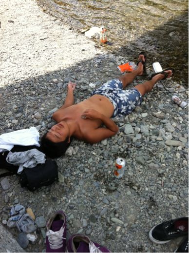 いい写真が撮れたので、 この角度 そして完全に伸びきった体 まさに安らぎの境地 ここまでいくとストレスとは無縁の世界になる よほど楽しく乾杯できたであろう事がオーラで伝わる 今もその楽しさを思い出しているのだろう 彼は飲み過ぎて死んでいるのではなく 飲み過ぎて座ったら思いのほか草むらが体にフィットしただけである やはり人間と言えど 帰る場所は自然の中なんでしょうかね お酒は楽しく飲むのが一番ですね |